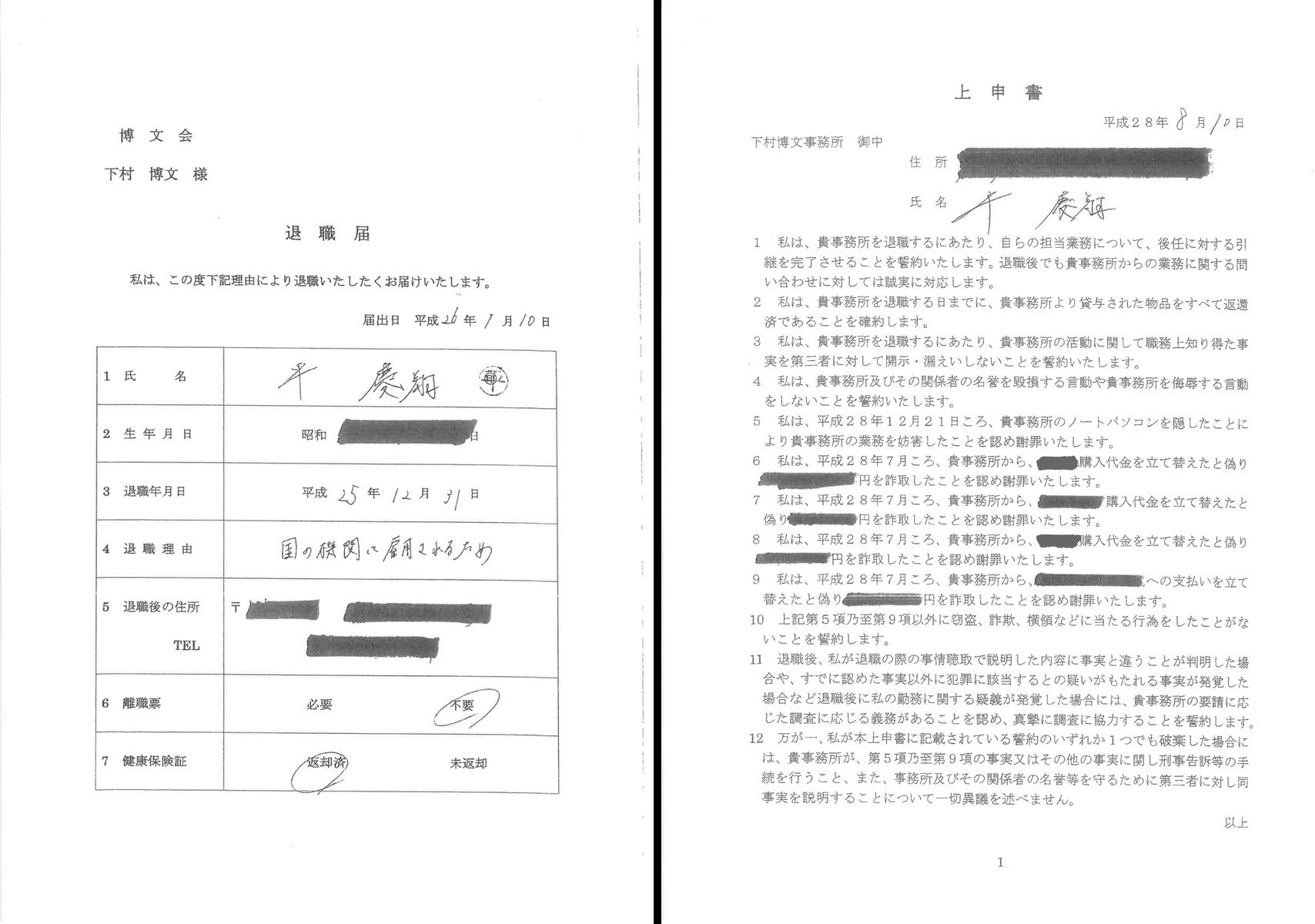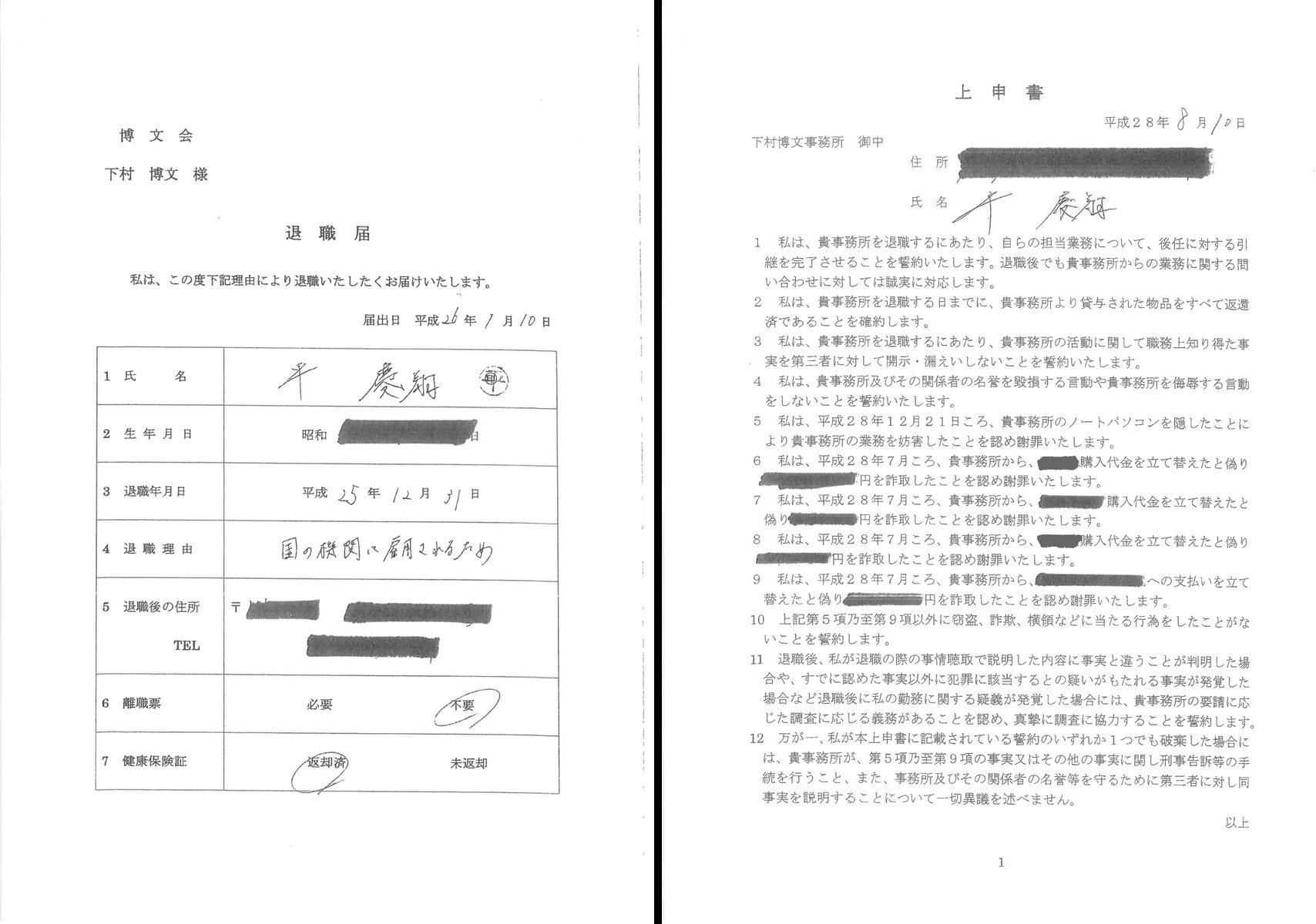 しかし、出回っている画像(退職届とか上申書とか)は、インパクトありますね。