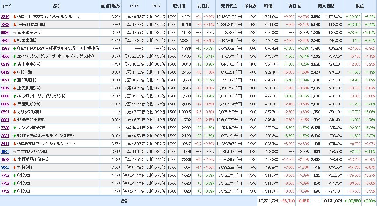 7/10-14:389,158→168,557 △220,601(実現益+131,005)☓