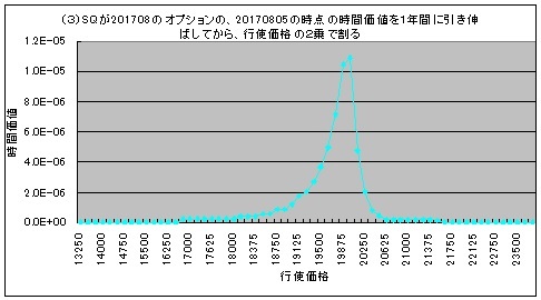 (1)縦軸をオプションの時間価値、横軸を権利行使価格としたグラフの面積が、ボラティリティーの2乗になるという考え方がベースにある。