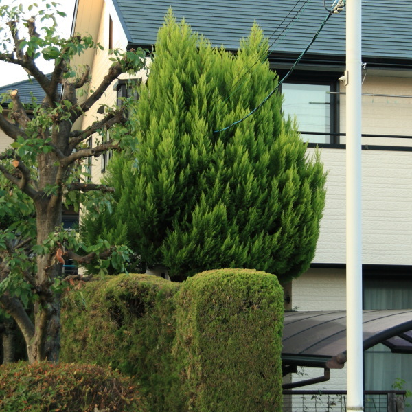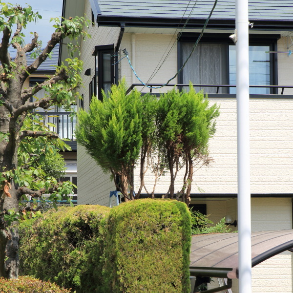 お隣さんが剪定されるまでは我家の樹木と同様な状態でしたが、