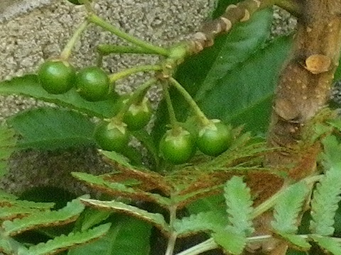 ↑ 同じく不明 上の写真とは葉っぱが違うので、別な種類なようです カミさんが言うには鳥が食べにくるとか