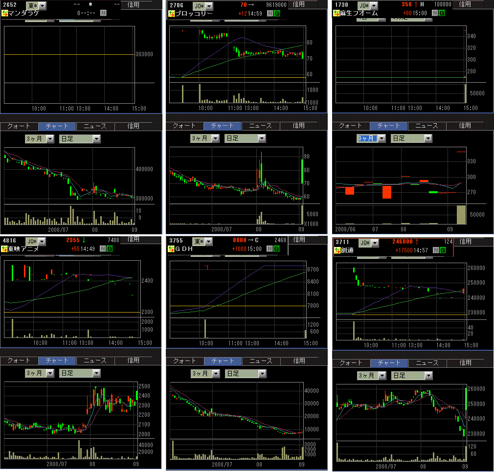 個別銘柄では、次期首相に有力視されているローゼン閣下(麻生氏)関連の銘柄が買われました。ブロッコリーとか、昨晩のPTSで既に買われていました。ゼネコンが買われてたのも、バラマキへの期待からですかね。