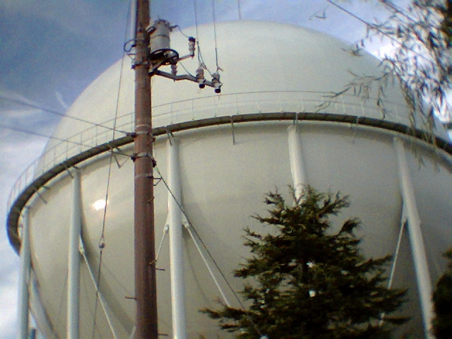このガスタンクは、もう少し実物は 緑色ぽいですョ。