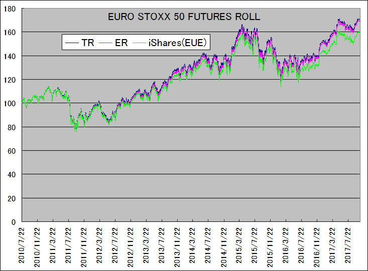 先物ロングによる投資を、EURO STOXX Futures Roll Index のTotalReturnおよびExcessReturn