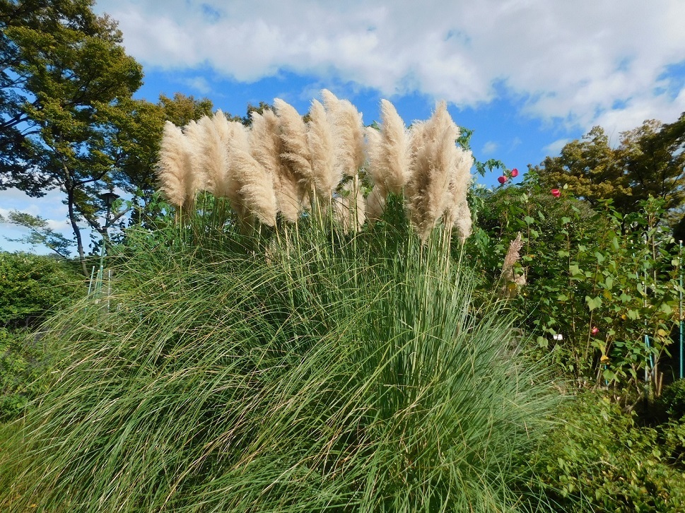 花壇にパンパスグラス。