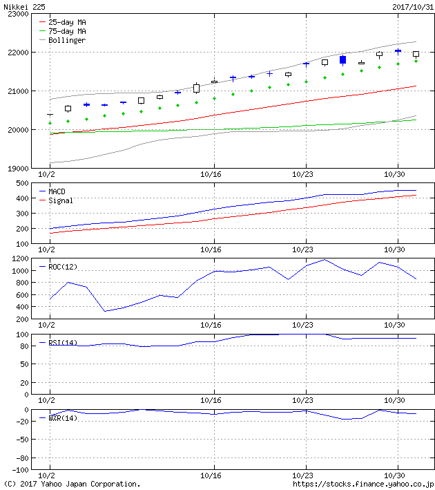 翌10/31も同様日銀砲発動あり、22,000円台維持。