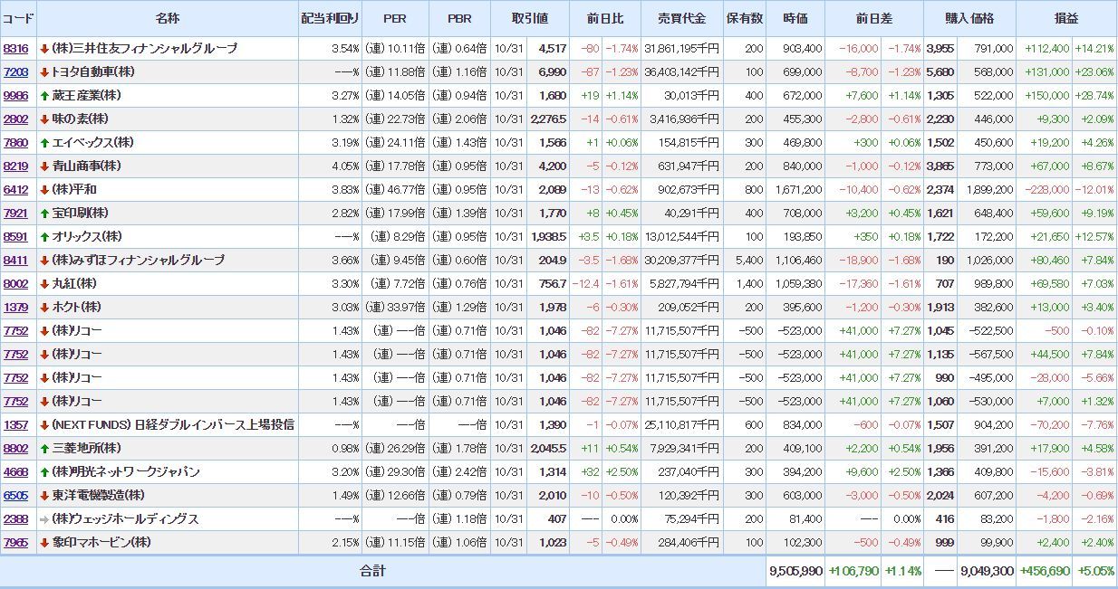 なお、10/30-31にリコーの売り玉をロールオーバーしたが、実現益には反映せず。