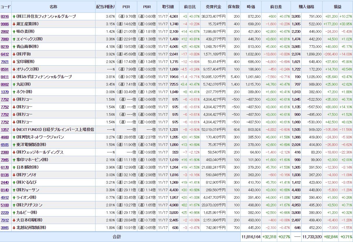 含み益:14銘柄(+2 )