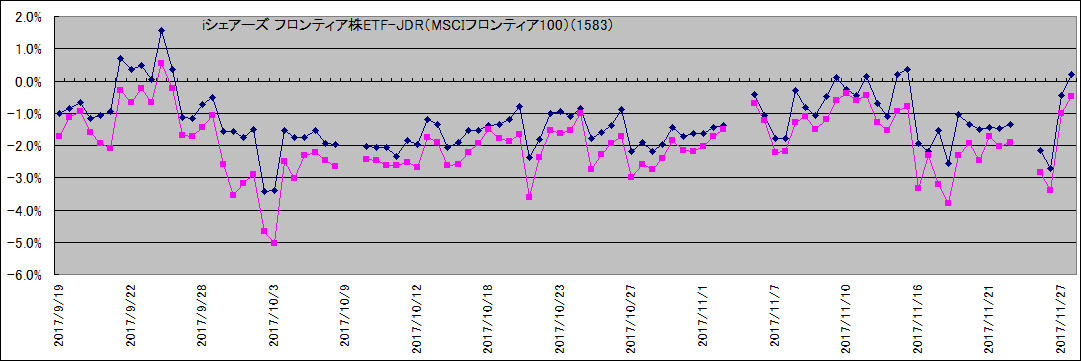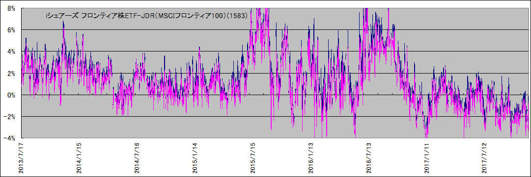 ですが、iNAVと気配値との乖離率をグラフにしました。