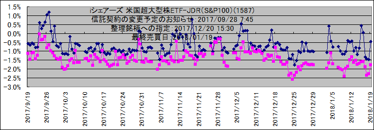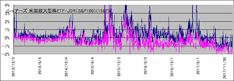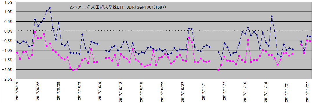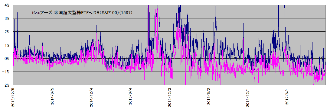 ですが、iNAVと気配値との乖離率をグラフにしました。