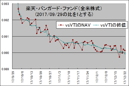 ・ファンド価格とVTI価格(NAV・終値)の比の推移
