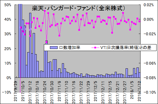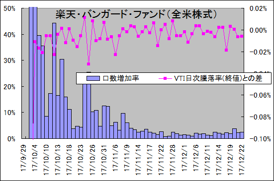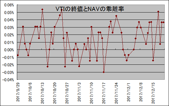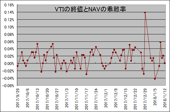 ・ファンド価格の騰落率と、VTI終値の日次騰落率の差