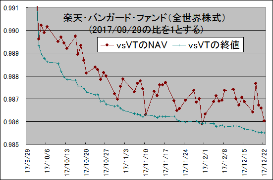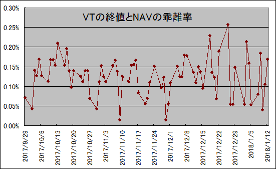 ・ファンド価格の騰落率と、VT終値の日次騰落率の差