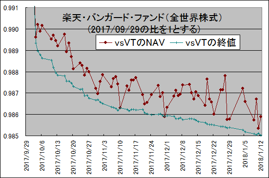 ・ファンド価格とVT価格(NAV・終値)の比の推移