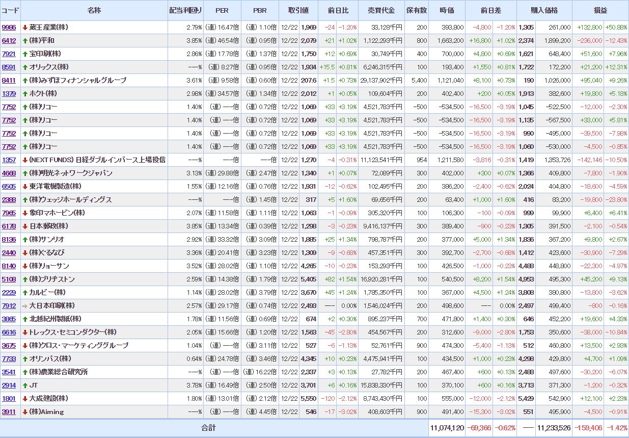 含み益:12銘柄(- )