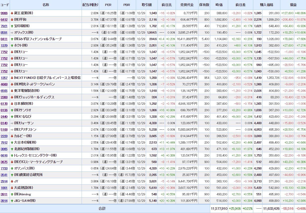 ■9986 蔵王産業 @1,305 → @1,890 一部売却
