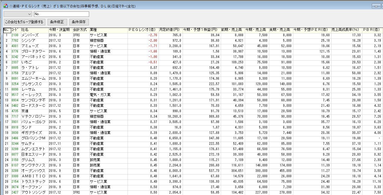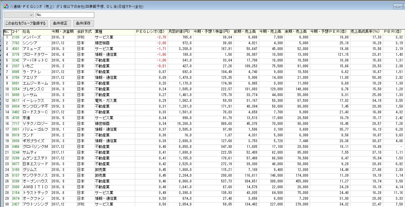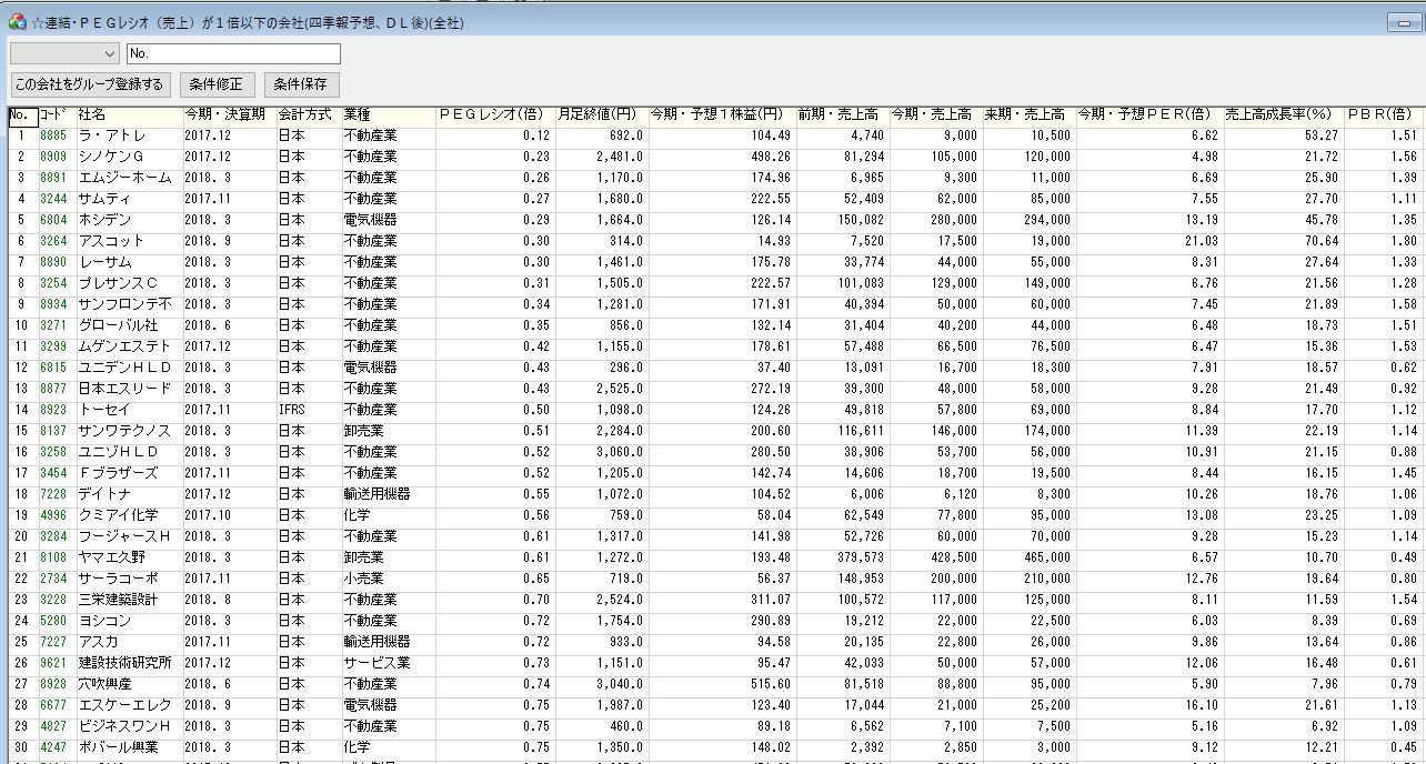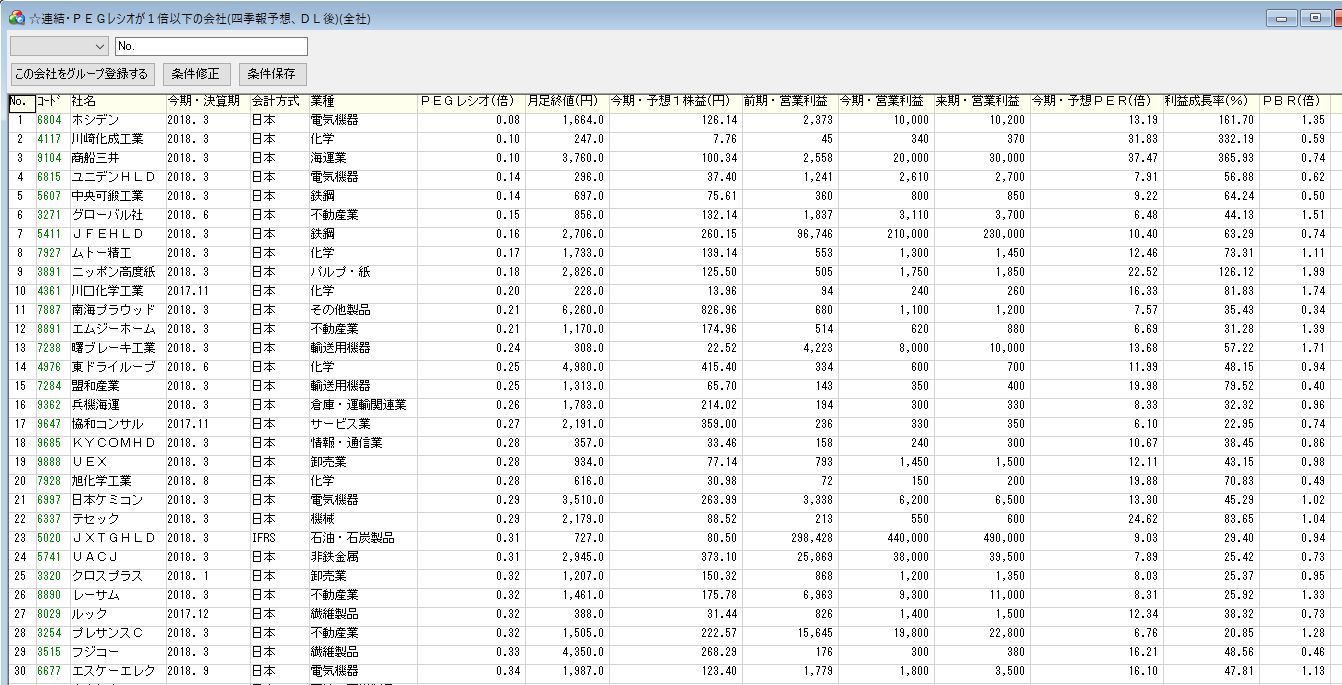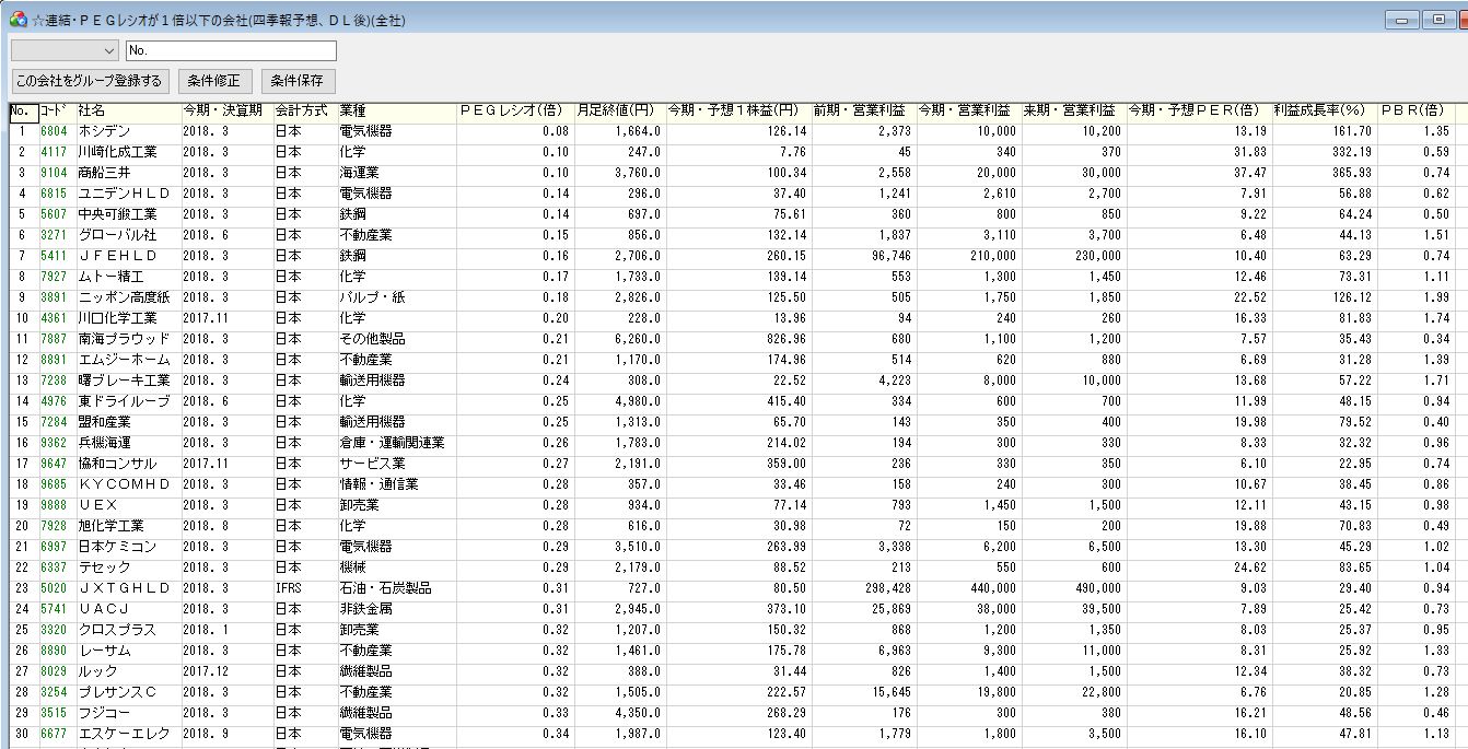 2.四季報CD-ROMのPEGレシオによるスクリーニング