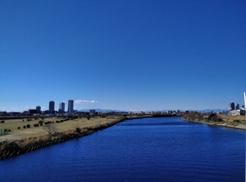 帰りに多摩川大橋(第二京浜)の上から富士山方向を見ると、こんな感じでした