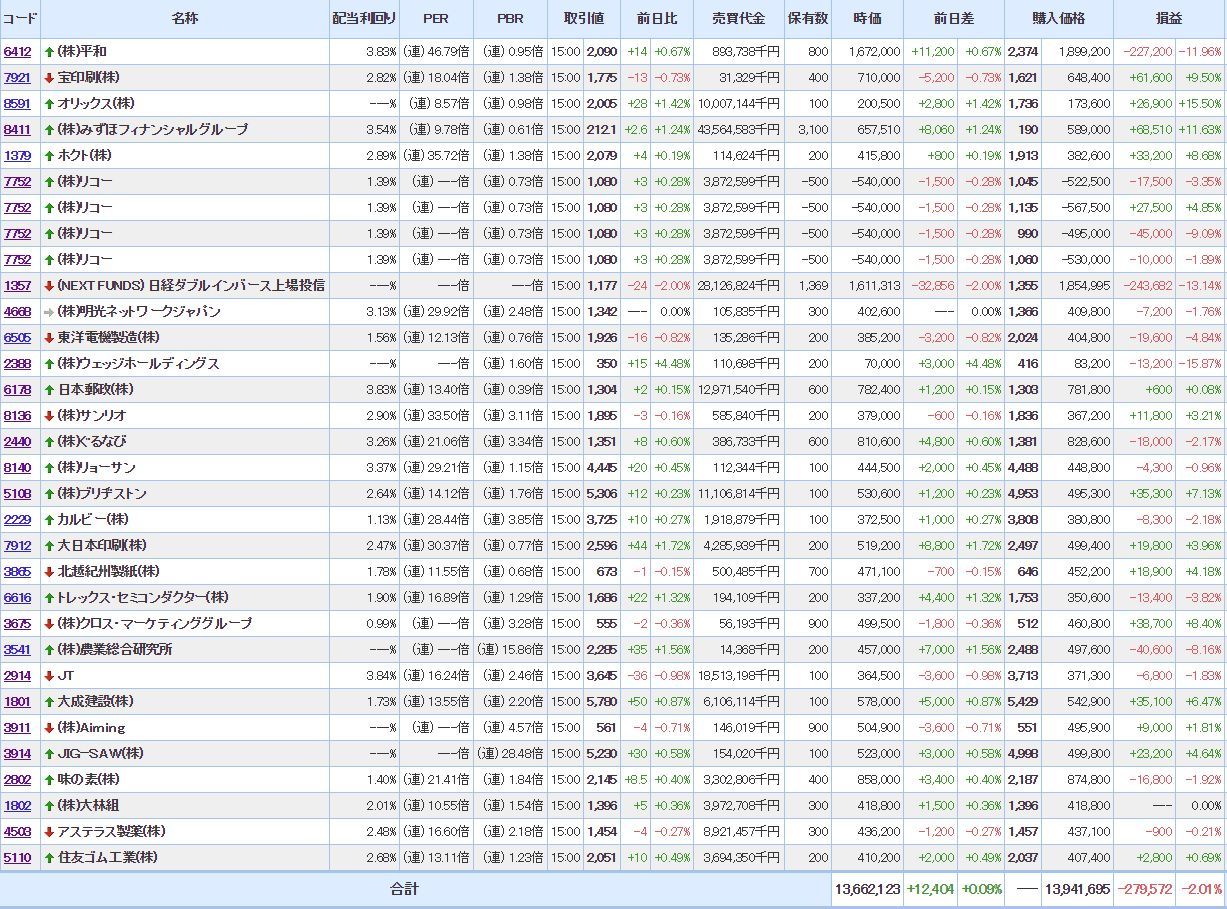 含み益:14銘柄(- )