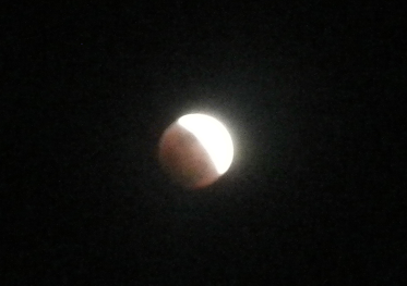 昨夜の月食、思いのほかよく晴れてバッチリ見えました。といっても寒いので玄関外でちょっと見ただけ。