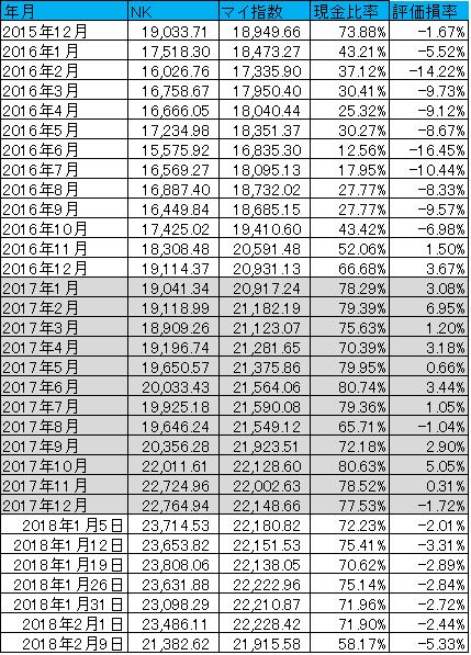 要は、現金+株式投資時価=総投資時価を日経平均と比較できるように