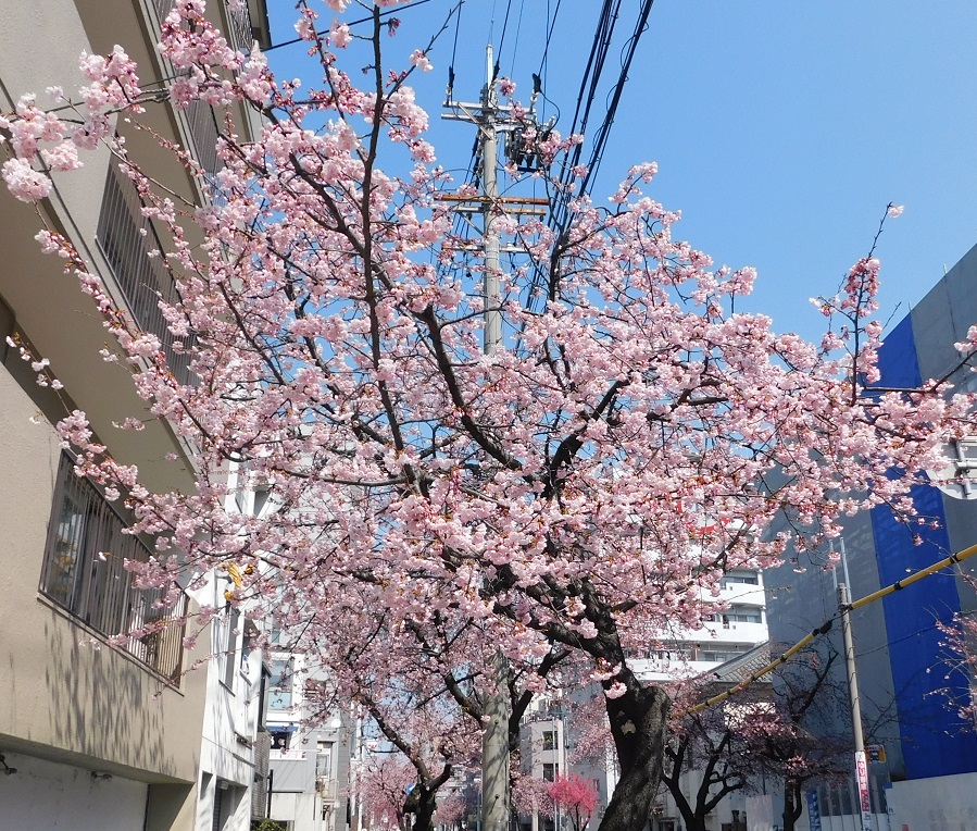 東区の大カンザクラ、パスコの本社までの道路沿い。