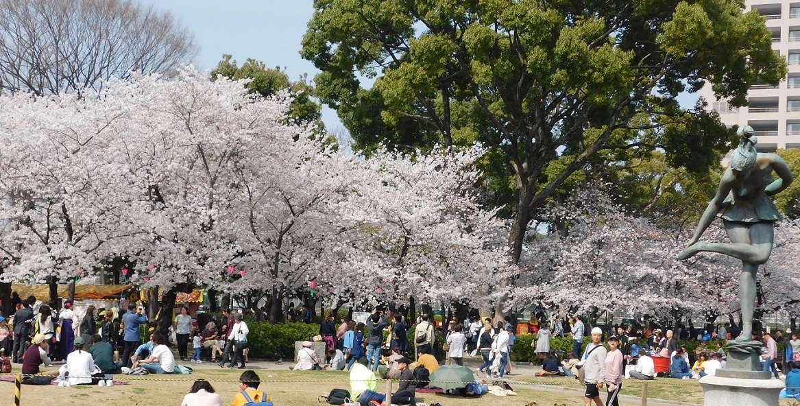 はなもいろいろあるが、鶴舞公園は若い人が多い公園。