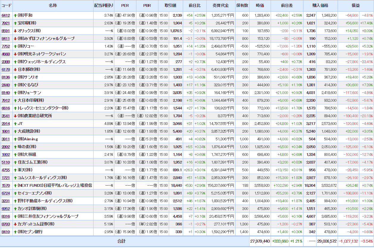 含み損:19銘柄(-)