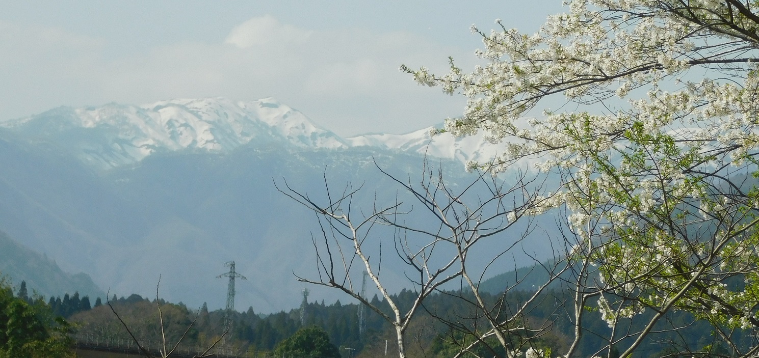 下を樽見鉄道がとおり、桜、雪などの