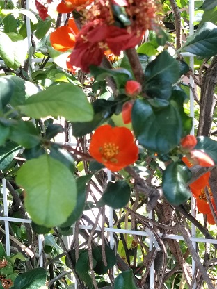 ボケ(木瓜)ですが、そろそろ終わりかけ,もう実がなっています