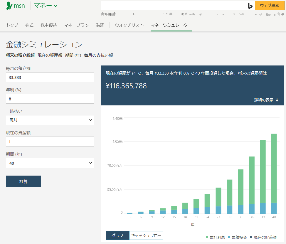 ・毎月33,333円の積み立てを40年続けた場合に、