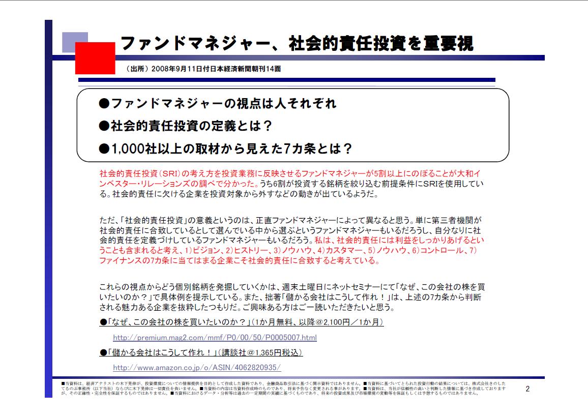 自分なりに社会的責任を定義づけしているファンドマネジャーもいるだろう。