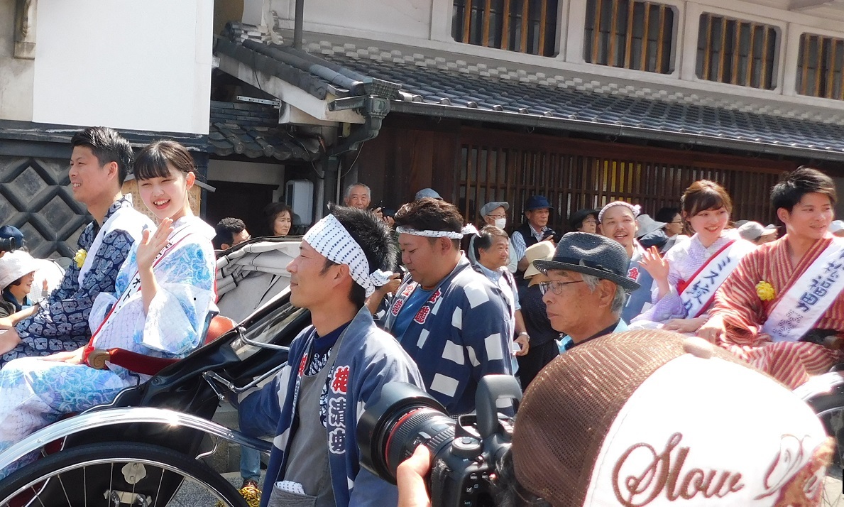 絞り祭りのメインのパレード、暑いのでかわいそうに。