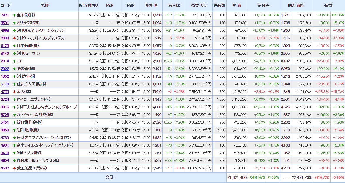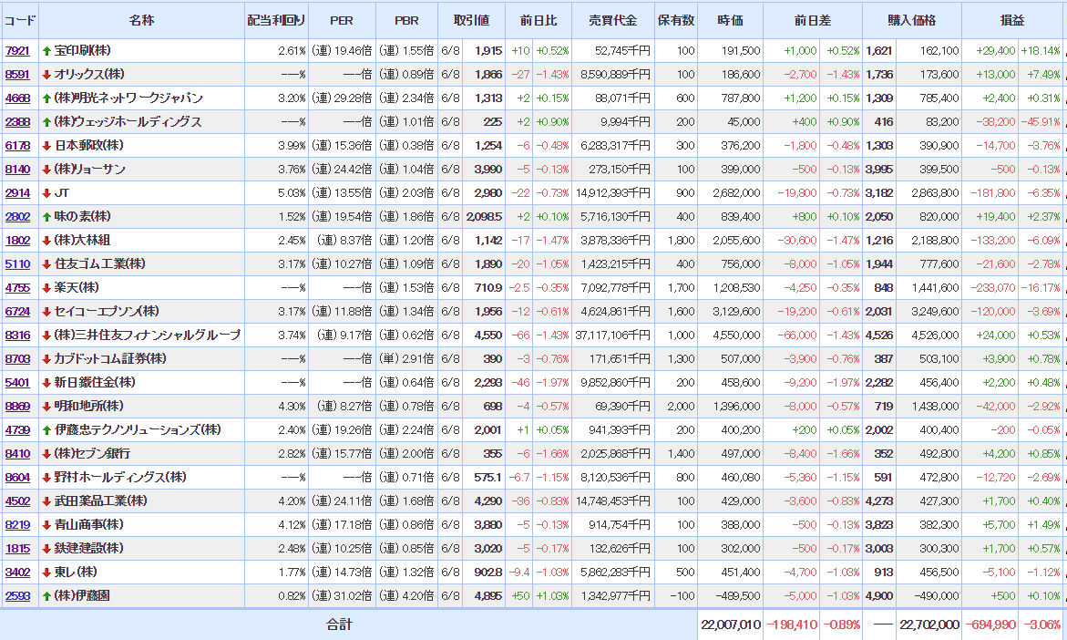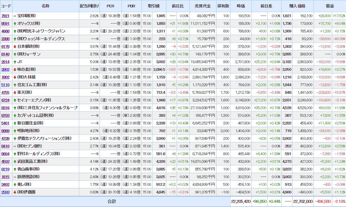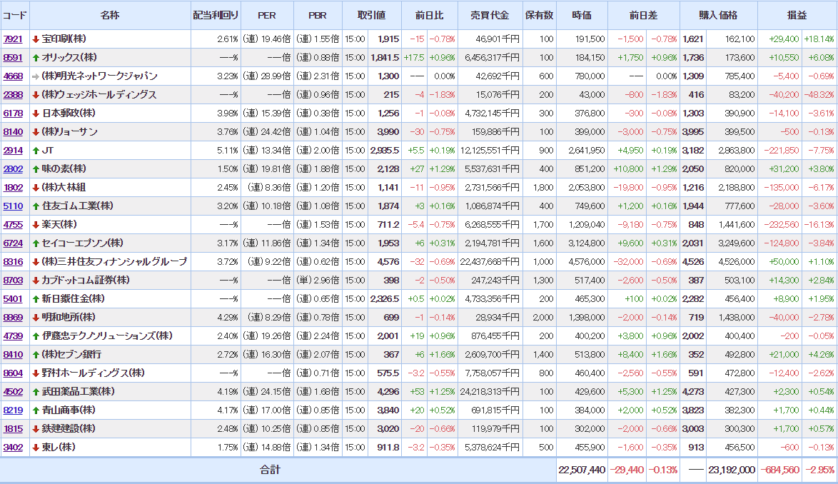 先週の日経は、22,450.79→22,171.35 約280円の下落。