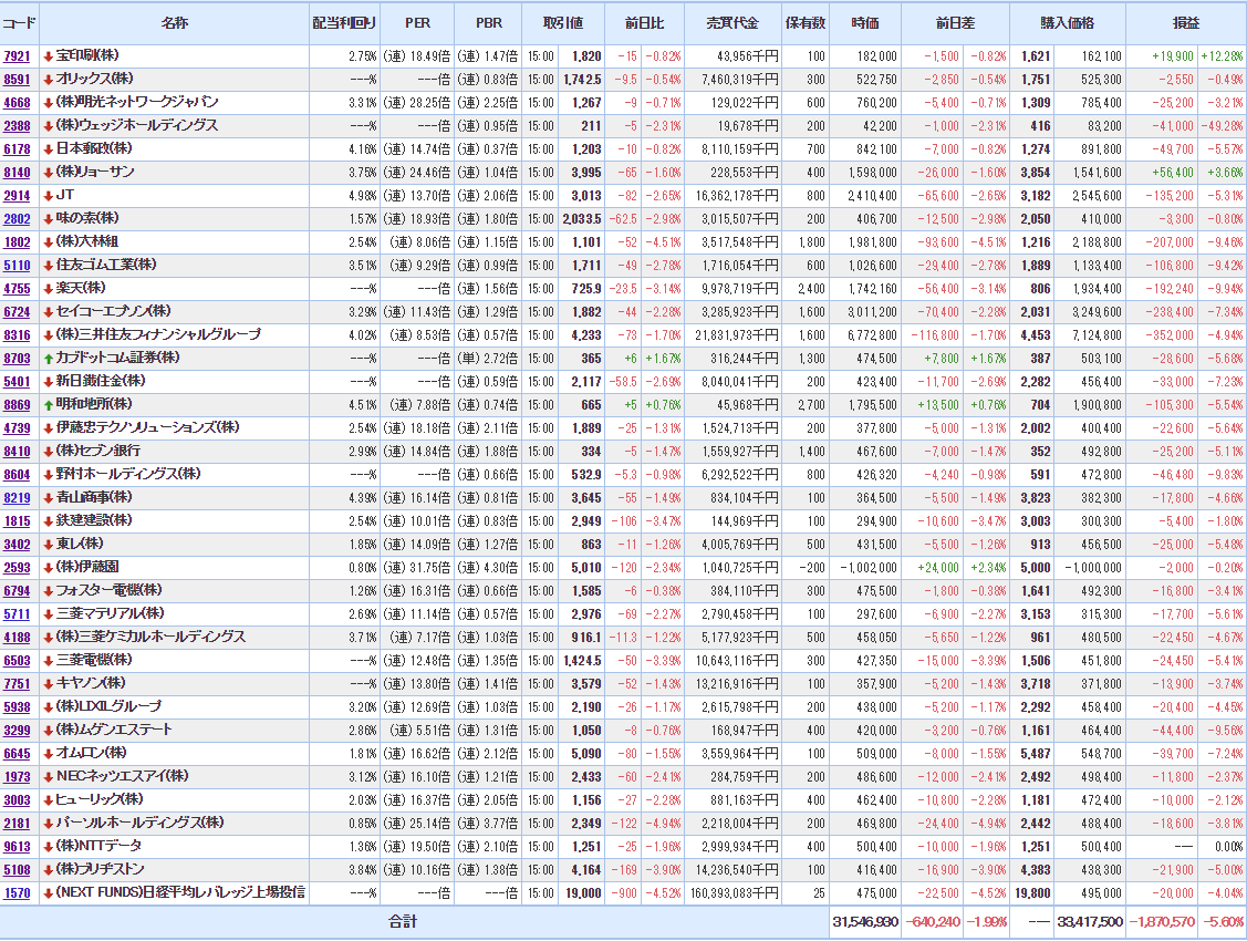 今週はどうなるか?流石に下げ止まってほしいが。。
