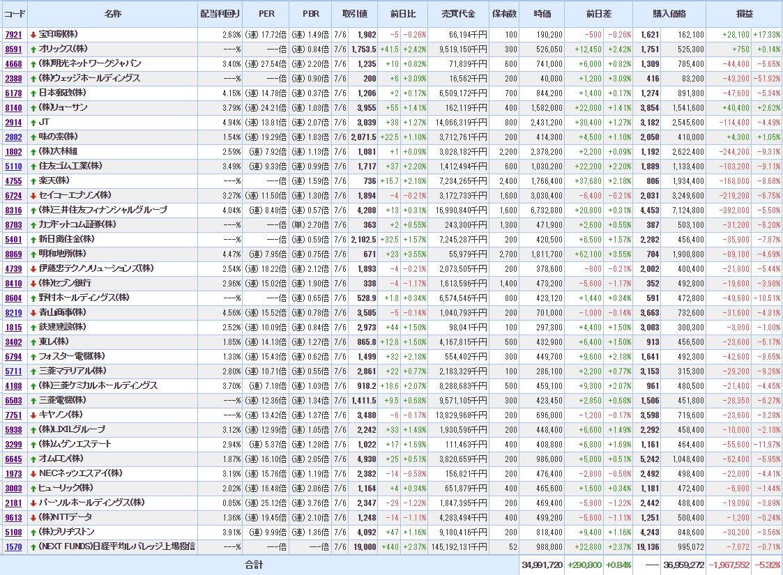 含み損:33銘柄(+6 )