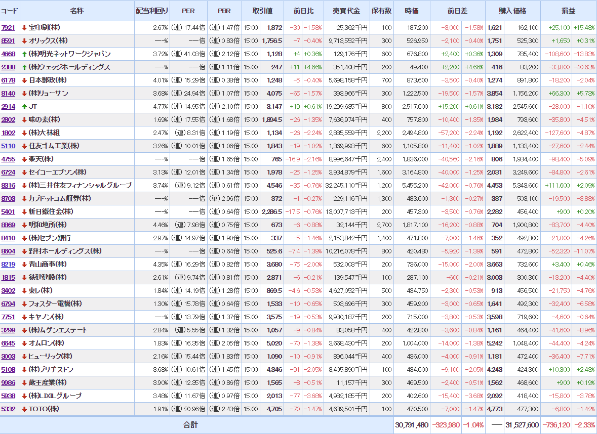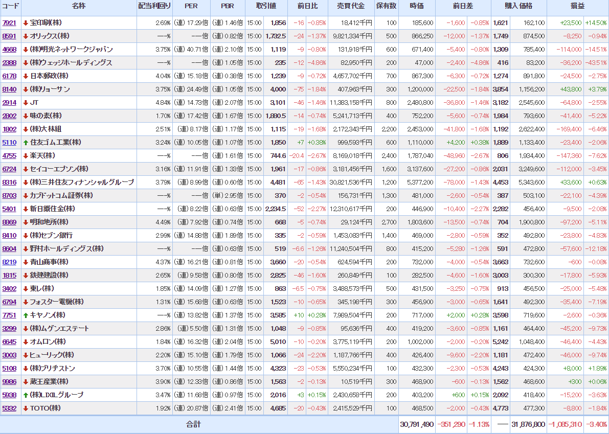 恐らく乱高下しそう。その意味で先週末時点の含み損益の状況なんて、誤差の範囲でしかないと思う。