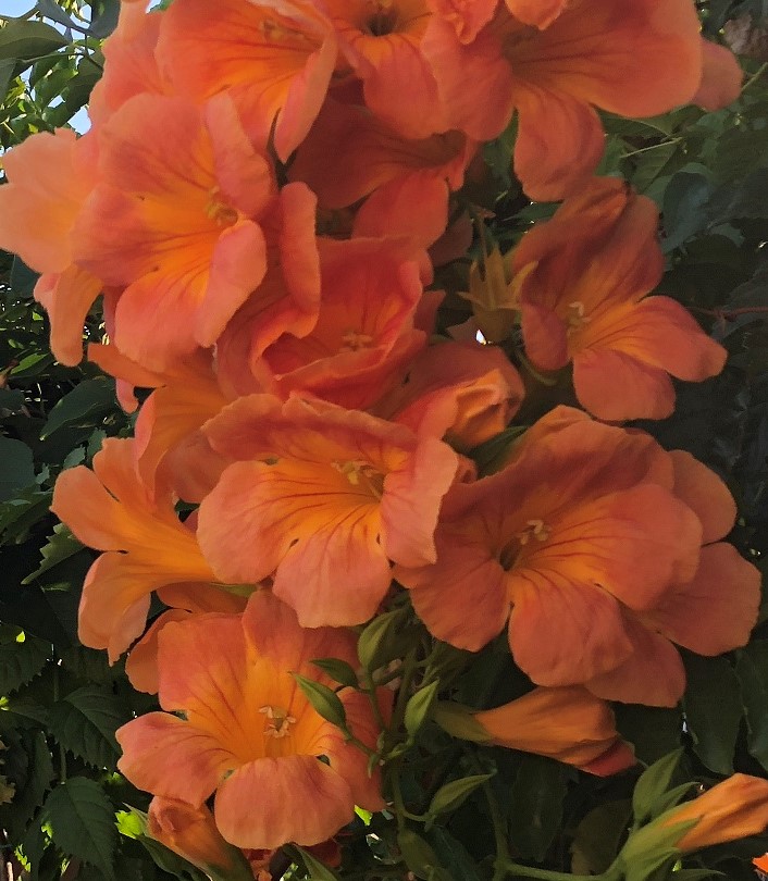 暑い中、雨も多いのでのうぜんかづらが咲いている。