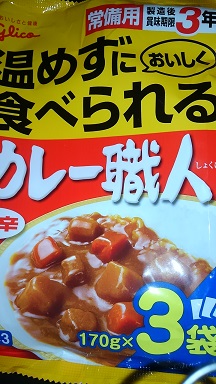 今日は災害の為に買っていたカレーを食べました。