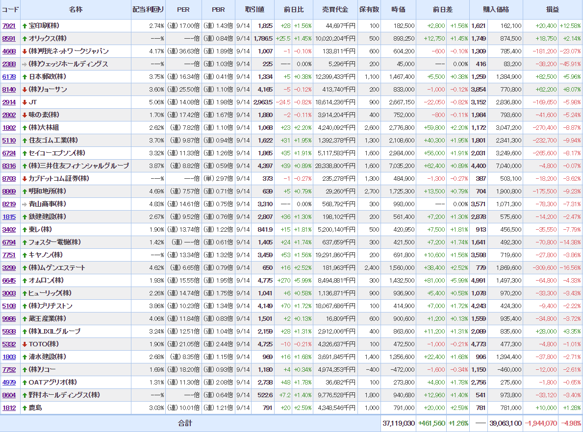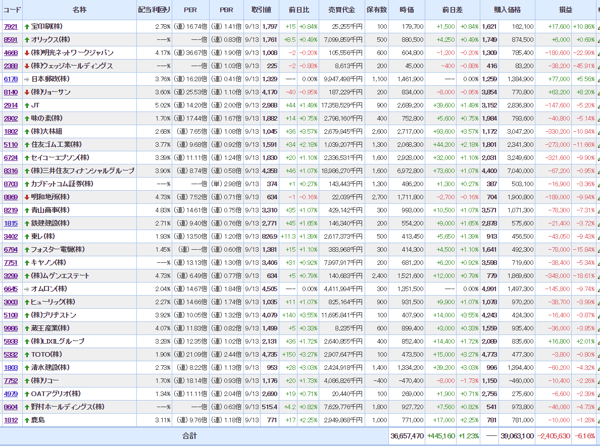 ・TOPIXは、1,735.35→1,684.31 約50円のマイナス