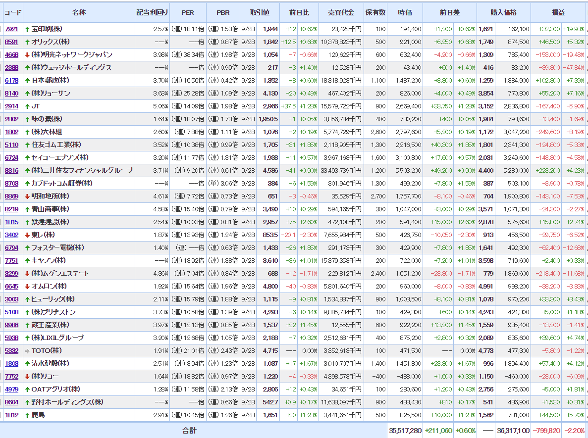 後半に利確を進めた。とはいえ、欲深く、10月のさらなる上昇に帰隊した。