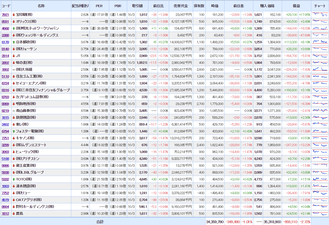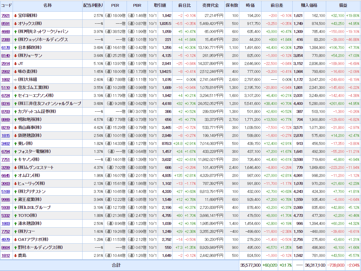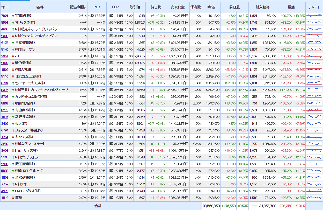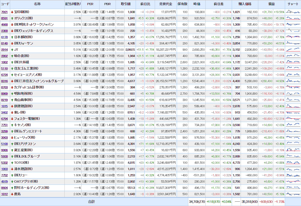 マイPFは相変わらず含み損状態だけど
