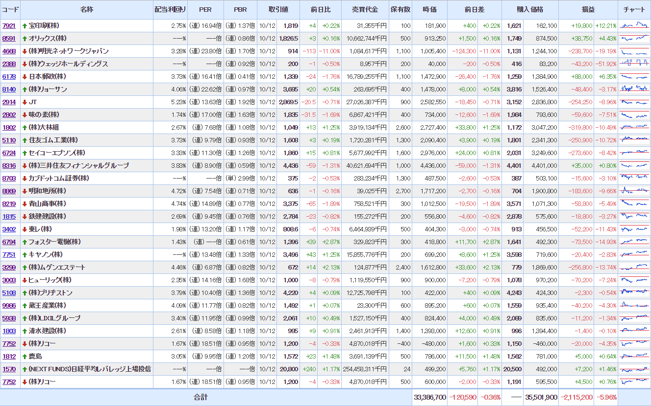 マイPFは、壮絶にダメダメ。含み損は9月上旬の水準に。