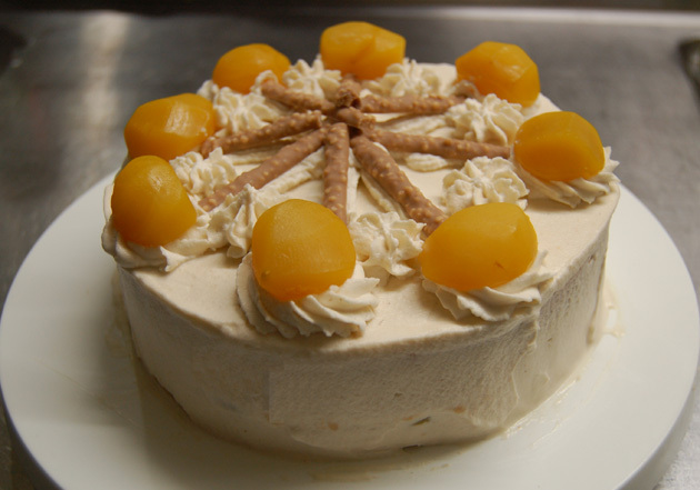 写真はムスメと私の久々合作ケーキ・・・最近私はもっぱら使用済みのボウルやハンドミキサーを洗ったり、材料の計量係。ナッペやデコレーションなどの面白い作業はほとんどムスメがやってしまいます(>イチゴが売っていなかったので、秋らしくマロンクリームのケーキです♪