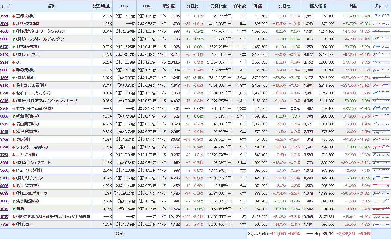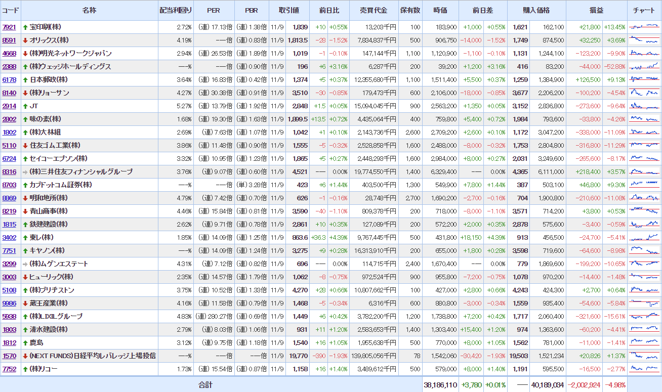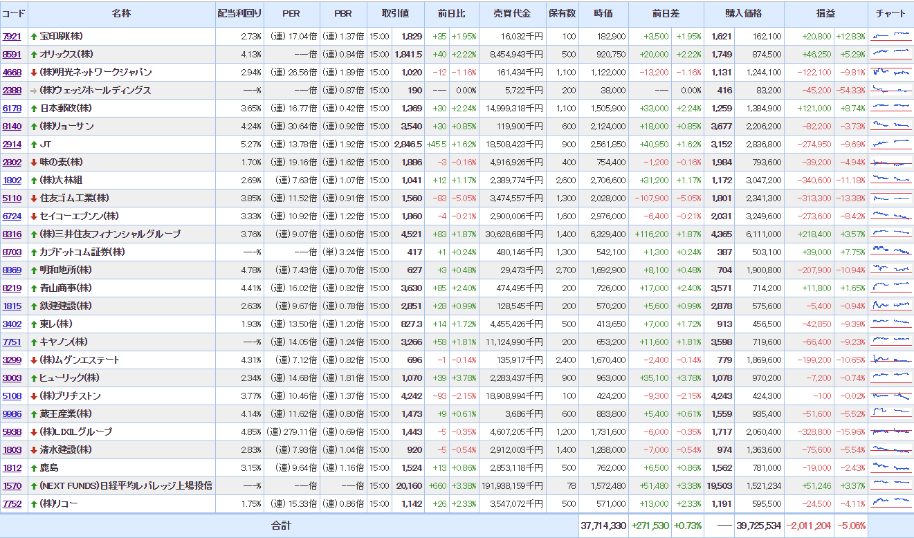 利益の出てる銘柄は利確しているので、含み損状態はしばらく続く。