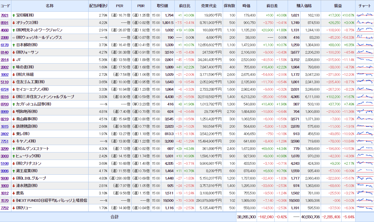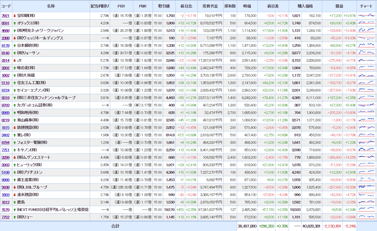 マイPFは、大幅に含み損を増加させ意気消沈状態。