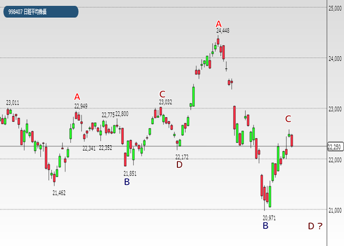 ・先週の日経は、22,243.66→22,250.25 約6円の上昇。