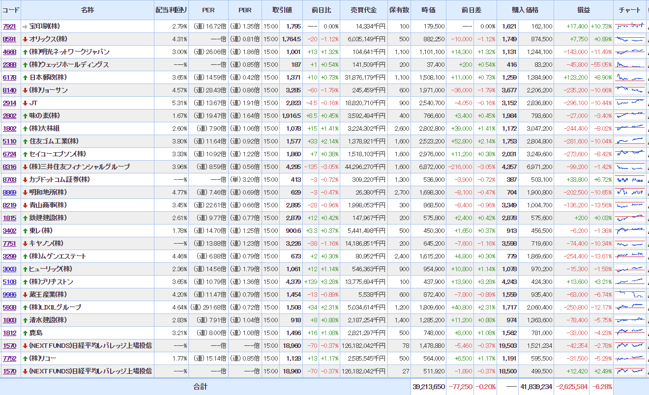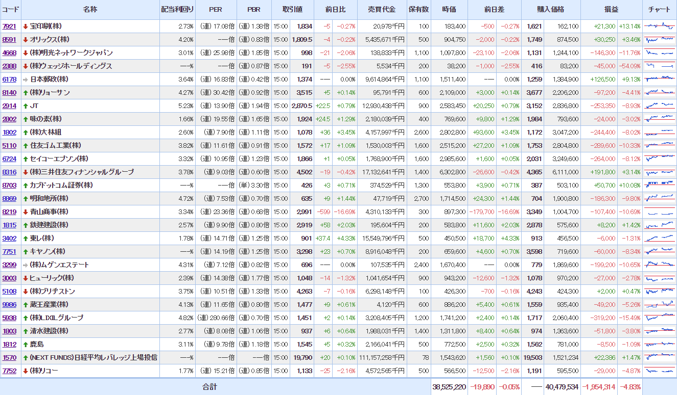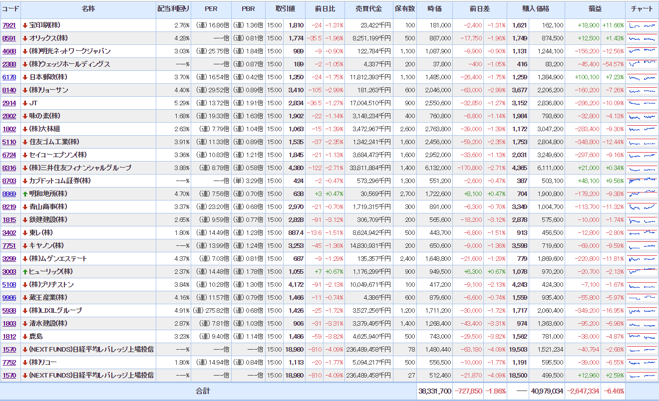 マイPFは、大幅に含み損を増加させ意気消沈状態。