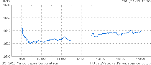 TOPIX :1,641.26  前日比+2.81(+0.17%)