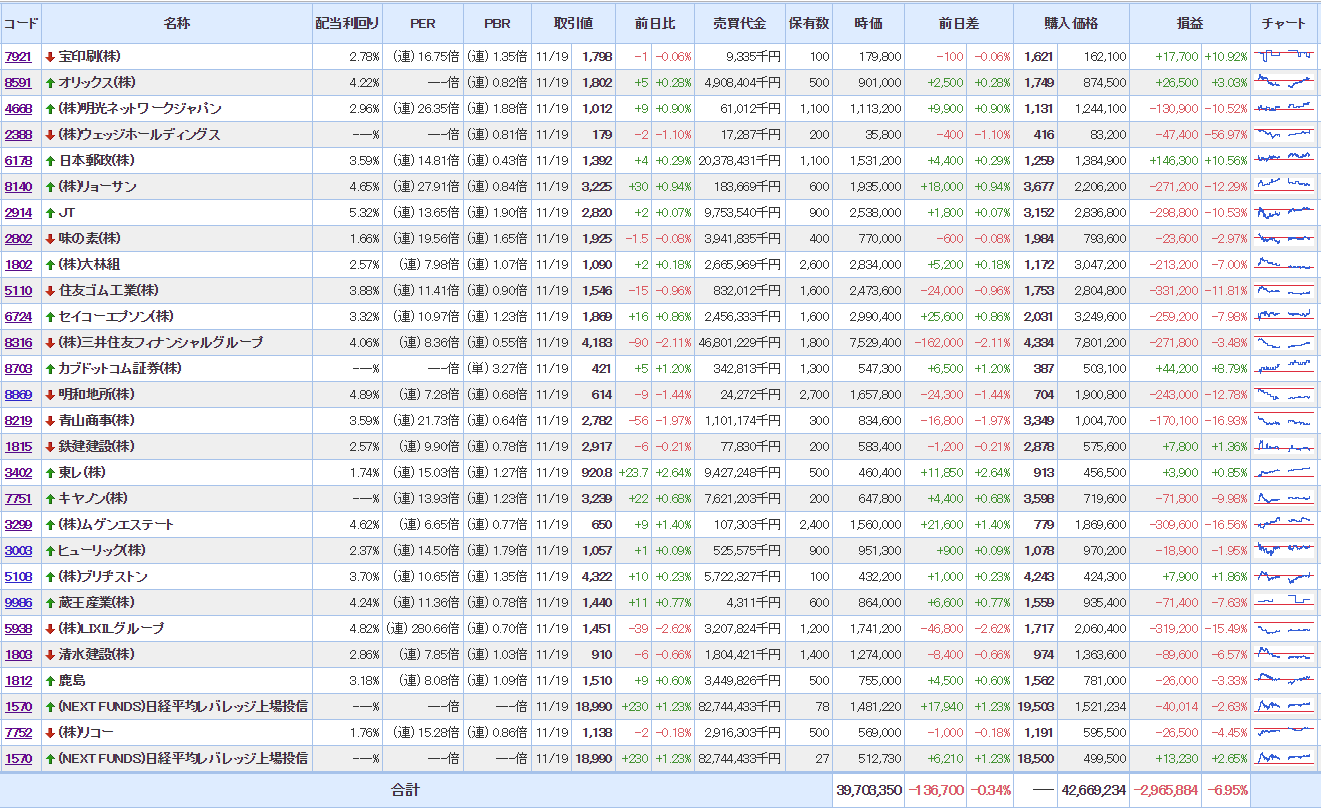 ・含み損銘柄数:20(前日比△01)
